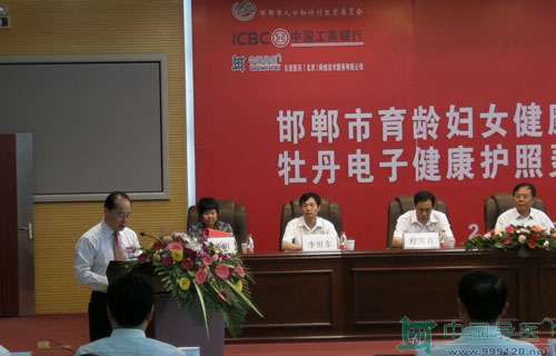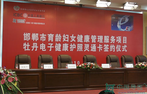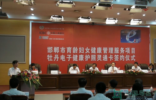 月陽光明媚、喜事連連,繼2010年元月8日邯鄲市復(fù)興區(qū)(試點(diǎn)單位)實(shí)施育齡婦女生殖健康管理服務(wù)項(xiàng)目啟動(dòng)暨遠(yuǎn)程會(huì)診中心揭牌儀式成功舉辦,四個(gè)后的今天,也就是2010年5月26日,“項(xiàng)目”實(shí)施再上新臺(tái)階,由東亞醫(yī)訊公司、邯鄲市人口和計(jì)生委、工商銀行邯鄲分行隆重舉行“邯鄲市育齡婦女健康管理服務(wù)項(xiàng)目暨牡丹電子健康護(hù)照靈通卡”三方合作簽約新聞發(fā)布會(huì)。
