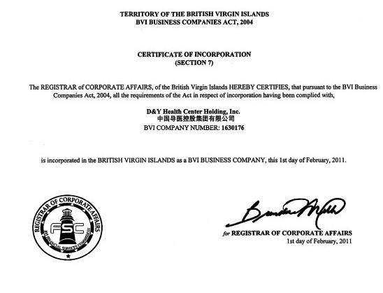 本文摘要: 熱烈祝賀“中國導醫控股集團有限公司”(D&Y Health Center Holding ,Inc.)在美成功注冊!