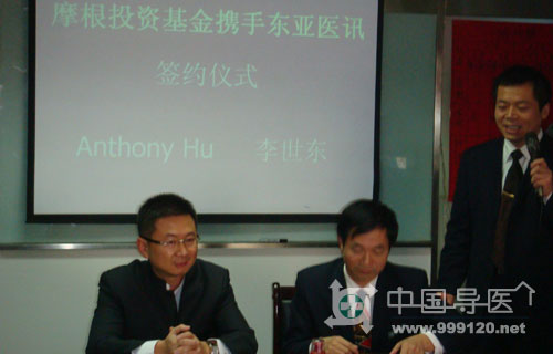 11月22日,“導醫(yī)網(wǎng)”獨家獲悉,投資業(yè)巨擎湯姆斯·摩根投資基金亞太區(qū)副總裁胡發(fā)祥先生與東亞醫(yī)訊(北京)網(wǎng)絡技術服務有限公司(以下簡稱東亞醫(yī)訊公司)董事長李世東先生正式簽約,欲在健康管理行業(yè)一展身手。