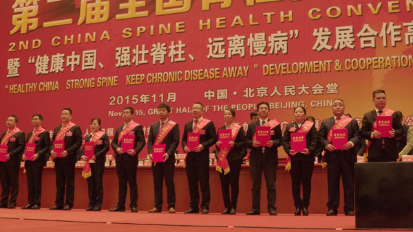 為認真貫徹國家十八大五中全會會議精神,積極響應十三五規劃的"健康中國"國家戰略,2015年11月21日下午,第二屆全國脊柱健康大會暨“健康中國·強壯脊柱·遠離慢病”合作發展高峰論壇在人民大會堂隆重召開。來自國家相關領導、院士、專家、專業學術團隊、脊柱產業精英團隊、全國脊柱健康事業者、志愿者、健康代表近7000人齊聚一堂,共同把脈中國健康服務產業發展及全球新機遇,分析慢病高發勢態,挖掘脊柱健康根源,探討慢性病防治康復科學方法和最新科技發展前沿。各大媒體爭相報道,反響熱烈,配合國家衛生監督及職能管理部門,建立一個遏制中國乃至世界慢性病發病率、改善慢性病、促進慢性病防治的長效機制,促進未來脊柱健康產業壯大和發展成為共識。