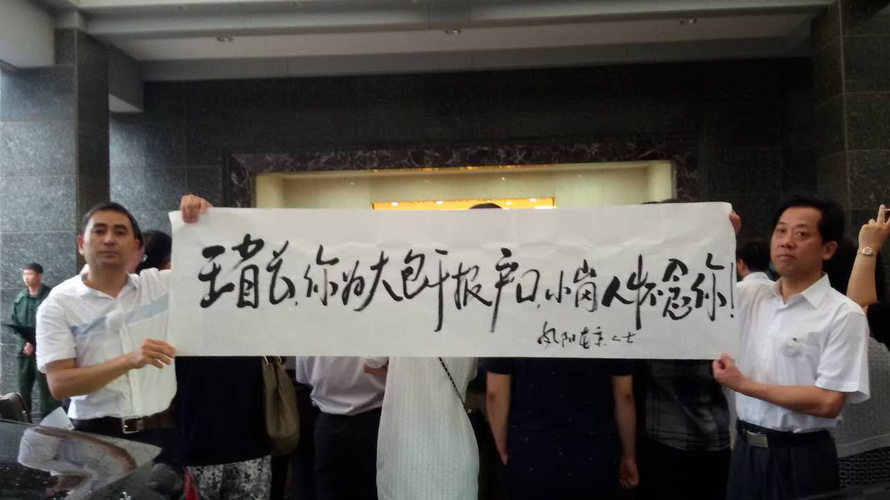 大包干帶頭人委托鳳陽在京人士導(dǎo)醫(yī)網(wǎng)書記、小崗村小崗人代表徐偉民在告別廳外拉起紀念王郁昭同志的字幅:“ 王省長 你為大包干報戶口 小崗人懷念你”。